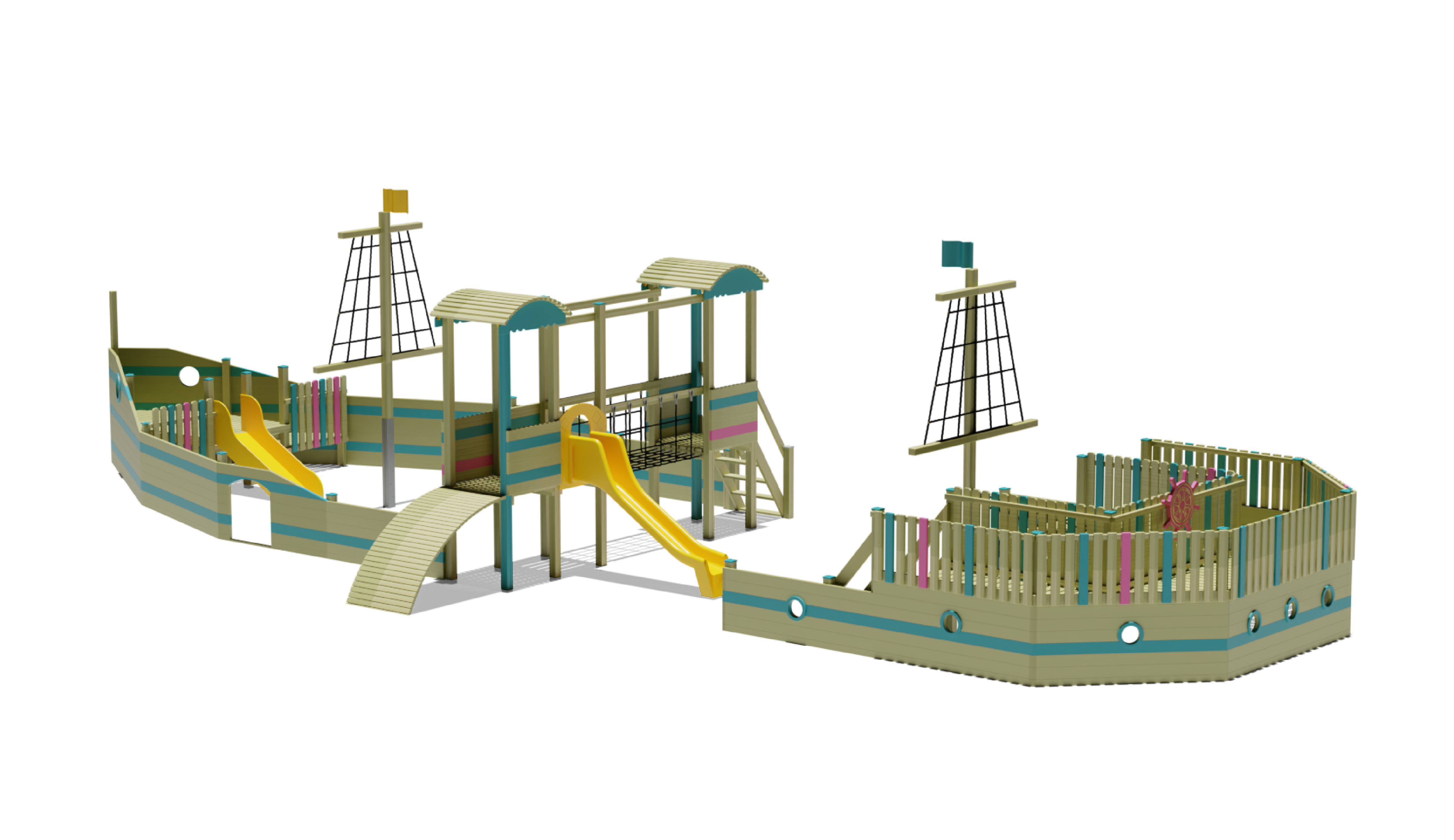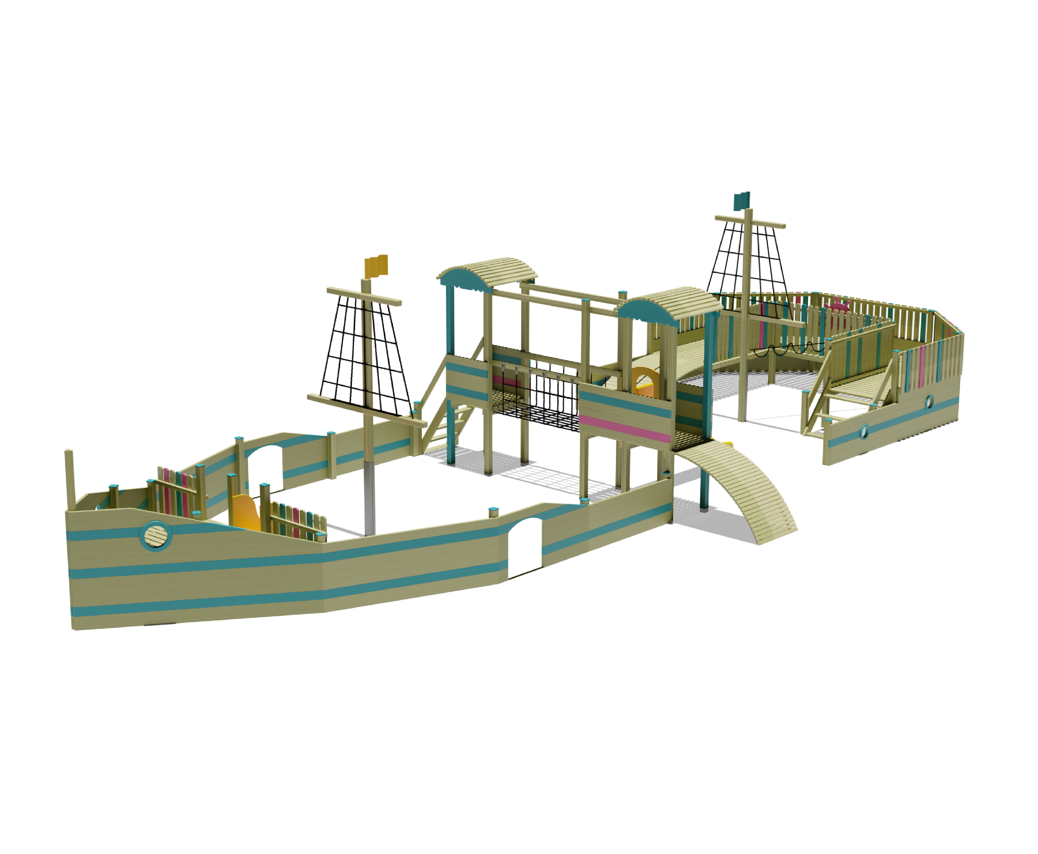 Igralo sadrži: pramac broda s podestom i malim toboganom, dva jarbola, dva tornja s krovom, most od mreže, polukružna penjalica, ravni tobogan, stepenice, krma broda s podestom, kormilom, stepenicama, polukružne penjalice sa užetom, uže za penjanje „monkey rope“