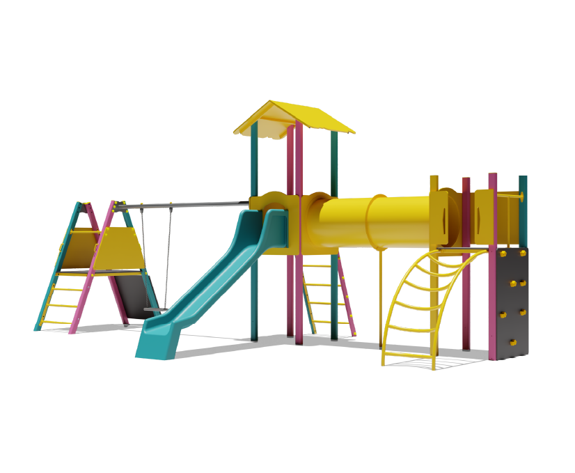 Igralo sadrži: toranj sa krovom, toranj bez krova, cijevni most, ravni tobogan, ploča sa gripsovima za penjanje, ljestve, polukružne ljestve, ljuljačka, obostrana penjalica