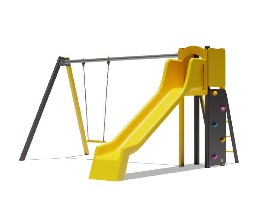 Igralo sadrži: toranj bez krova, ravni tobogan, ljestve, ljuljačku, ploča za penjanje