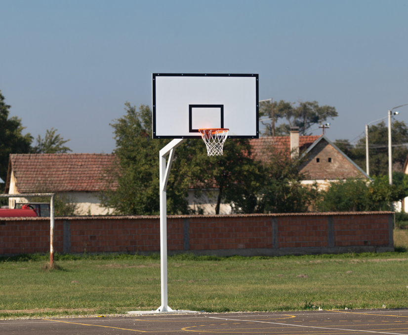 Na metalnoj konstrukciji je postavljena ploča i obruč sa mrežicom.