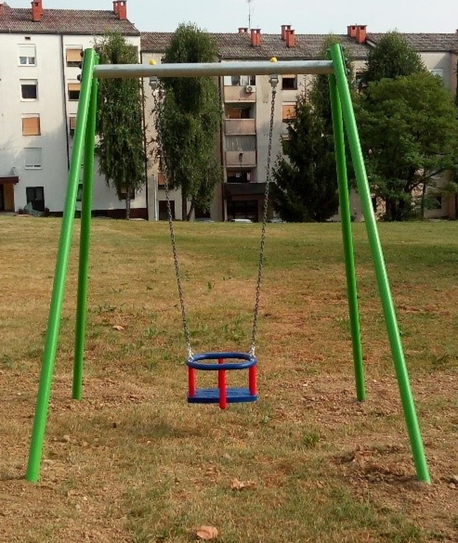 Ljuljačka “Baby” ima konstrukciju od okruglih čeličnih profila. Čelična greda ljuljačke je toplo cinčana, a lanci ljuljačke su s okretnim mehanizmom od čelika, što sprječava uvijanje lanca i omogućava bešumno ljuljanje. Svi vijčani spojevi su osigurani anti-vandal kapicama.