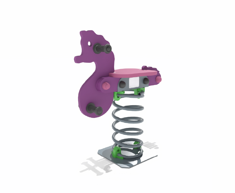 Lik njihalice u obliku morskog konjića i sjedište njihalice izrađeni su od High Density Polyethylene (polietilen visoke gustoće) debljine 19 mm, izvedene sa zaobljenim rubovima što povećava sigurnost uporabe njihalice. Njezinu kvalitetu čine otpornost na UV zrake, koroziju i vlagu u iznimno hladnim, toplim i morskim uvjetima. Protuklizni ergonomski rukohvati i držači za noge izrađeni su od polipropilena. Čelična opruga debljine fi 20 mm, površinski je zaštićena plastificiranjem. Svi vijčani spojevi osigurani su sa zaštitnim čepovima kako ne bi došlo do direktnog kontakta i ozljeđivanja pri uporabi opreme.