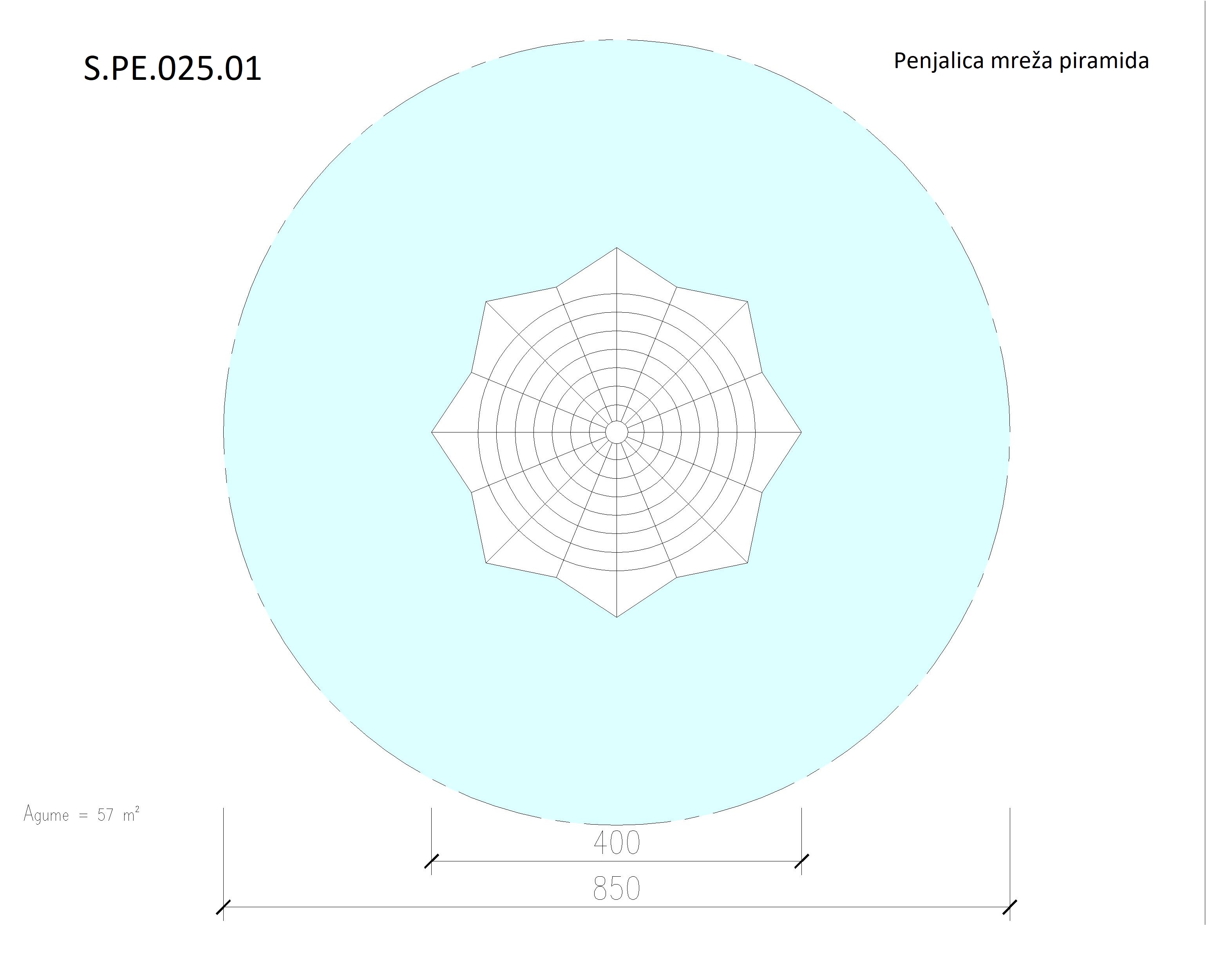 Mreža za penjanje: izrađena od čeličnih sajli koje su opletene poliamidnim užetom u boji, debljine 16mm. Mreža se učvršćuje za ankere u temeljnim betonskim stopama, pomoću zatezača sajli.