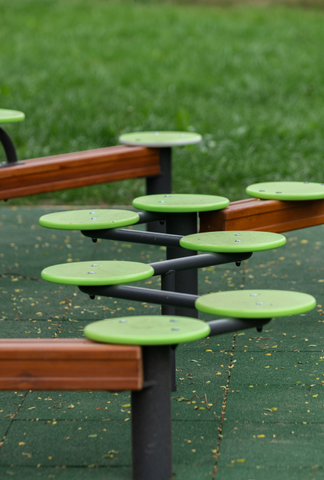 Penjalica sadrži: pet vježbi za održavanje ravnoteže – dvije ravne grede sa protu kliznim panelima za hodanje, jednu cik-cak gredu sa protu kliznim panelima za hodanje, jednu ravnu gredu za održavanje ravnoteže i mrežu za penjanje