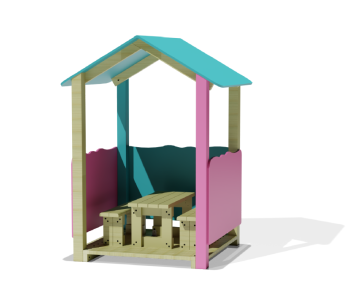 Igralo sadrži: toranj s krovom, šesterokutni toranj s krovom, ravni tobogan, cjevasti tobogan, stepenice s rukohvatom, mornarske ljestve, most od mreže