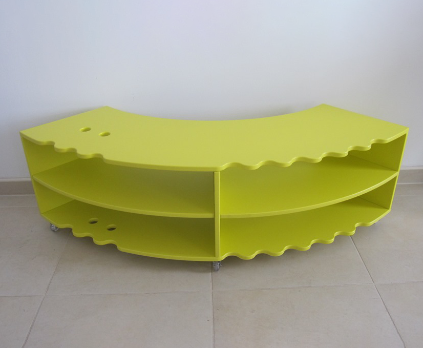 Niski polukružni poličar sa izrađenim valovitim policama.